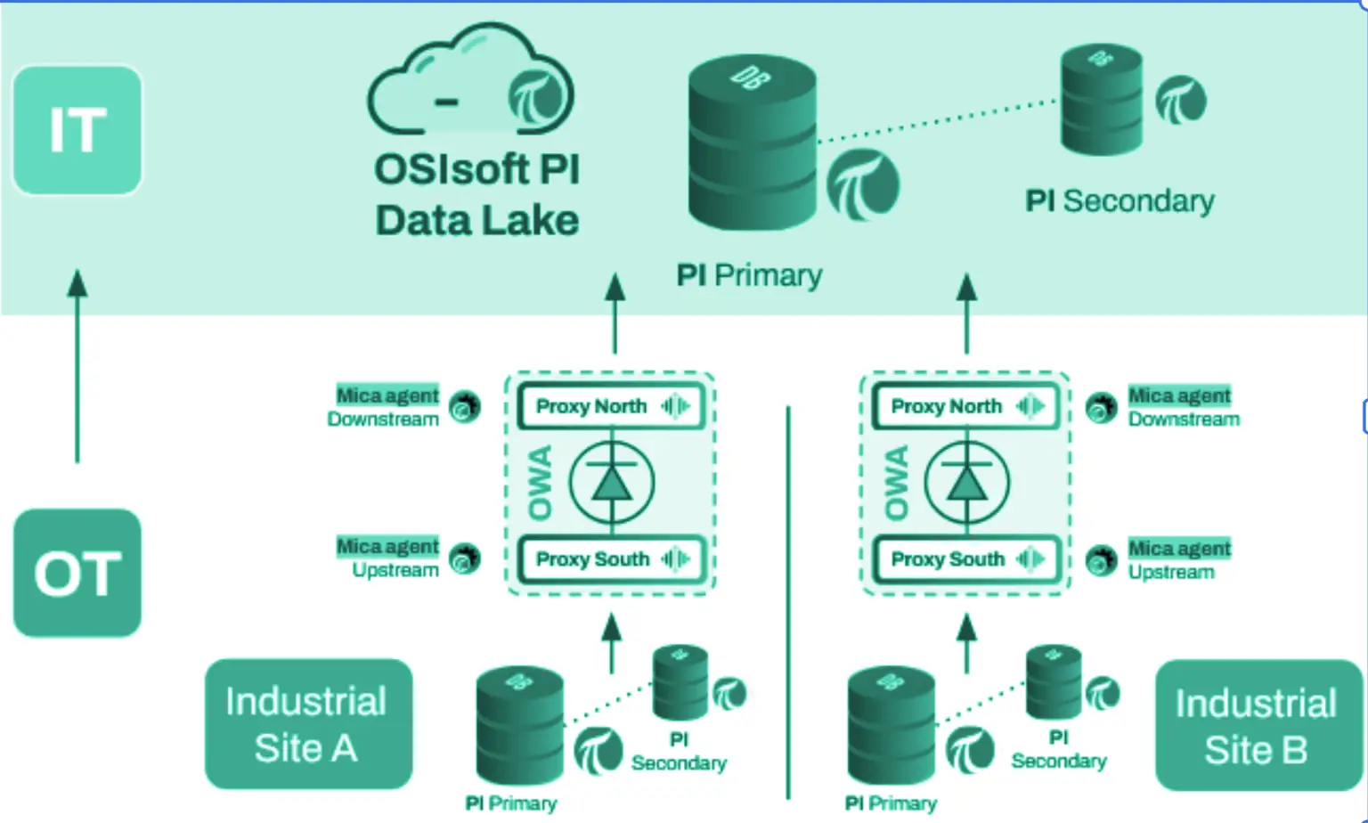 A national electricity grid operator needed to expose operational data from multiple distributed OT PI Historian servers to a centralized IT data lake used for analytics, performance monitoring, and long-term operational optimization.